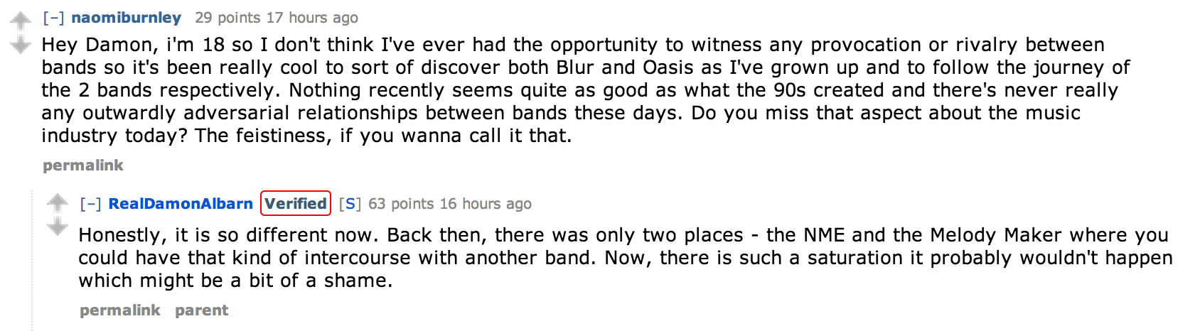 2. He longs for the days of back-and-forth barbs between Britpop bands (we say feuds are alive and well).