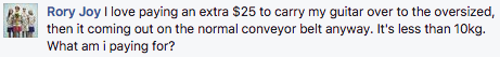 His post has attracted the attention of hundreds of punters, as well as some other musicians who can’t understand the reasoning behind the new ‘oversized item’ fee.