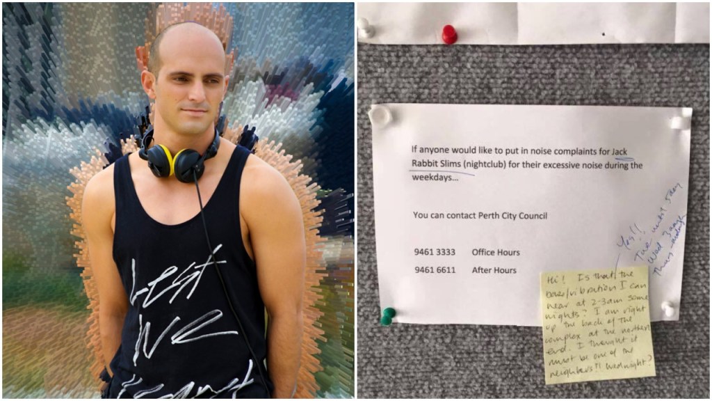 Jack Rabbit Slims has become one of the most respected and vibrant venues on the struggling Perth music scene in the last year, so when local DJ Timbee found a note left by a resident nearby by calling for the local government to reduce noise coming from the venue he wasn’t having a bar of it.