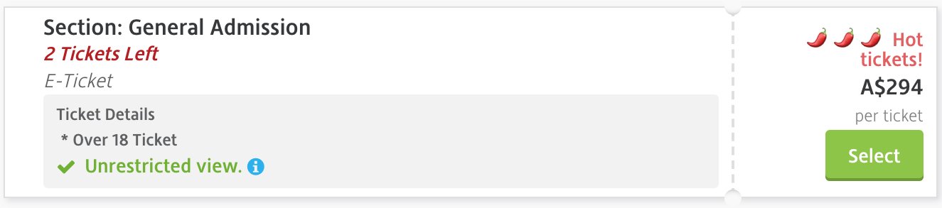 Despite that fact, both Viagogo and Gumtree have been inundated with overpriced tickets over the last 24 hours, including three-day tickets (which originally cost $399 each)…