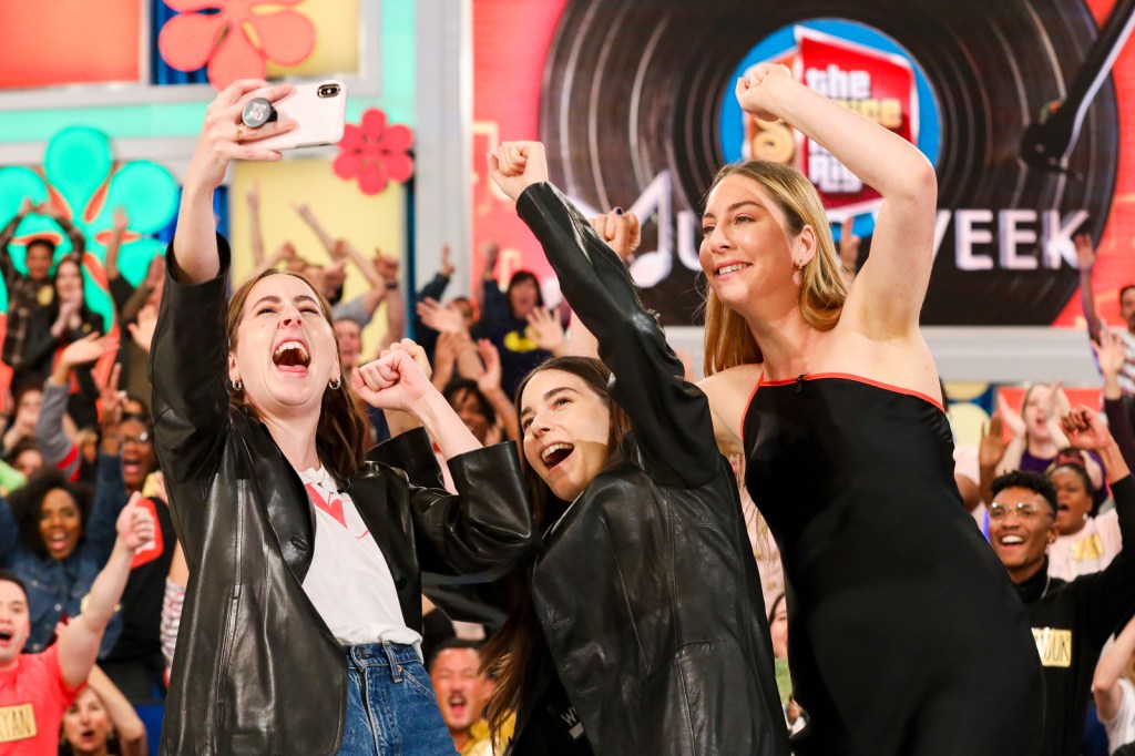 Most recently, Haim appeared on the program. After being introduced by way of the game show’s sliding doors (usually reserved for grand prizes), the sister trio played a short three-part drum piece together.